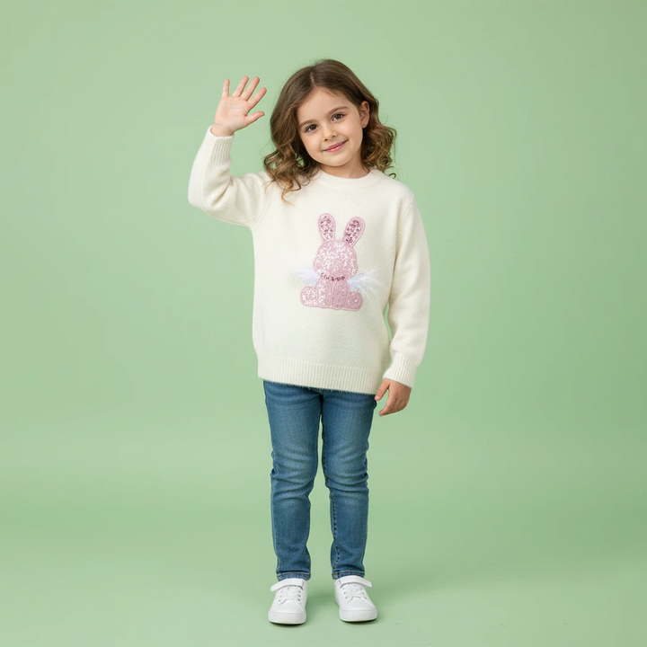 Adorable Baby Jersey with Cute Pink Rabbit & Sparkling Stone-Embellished Ears