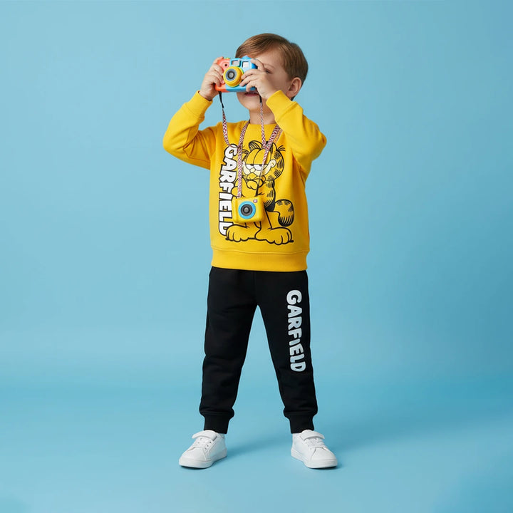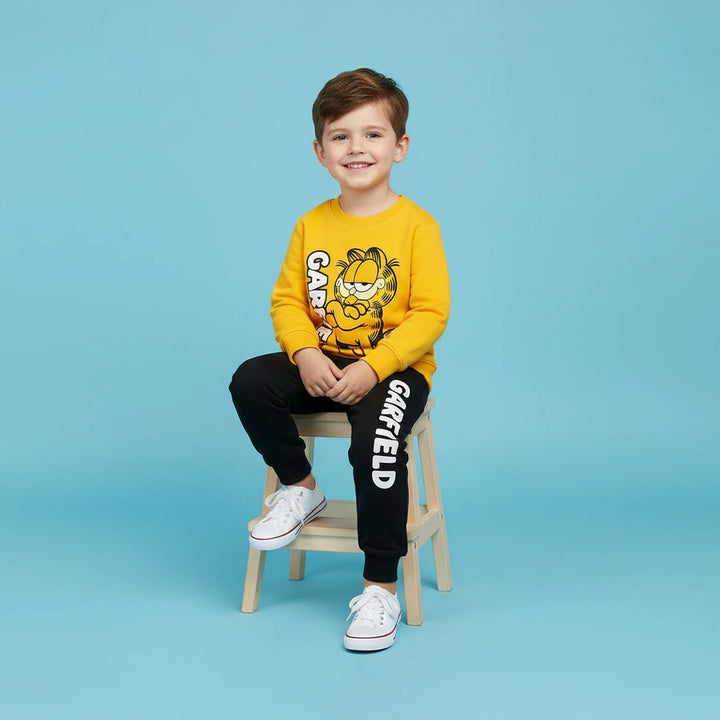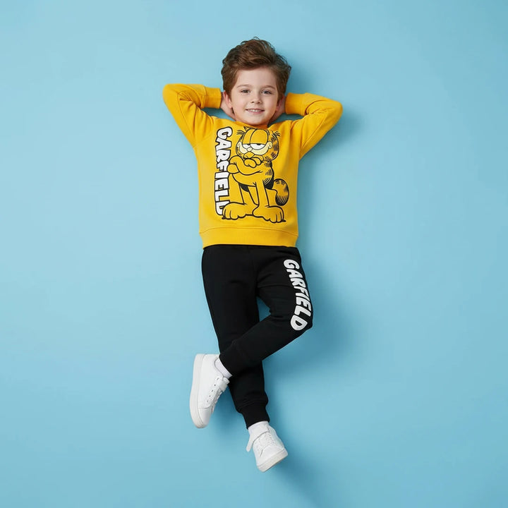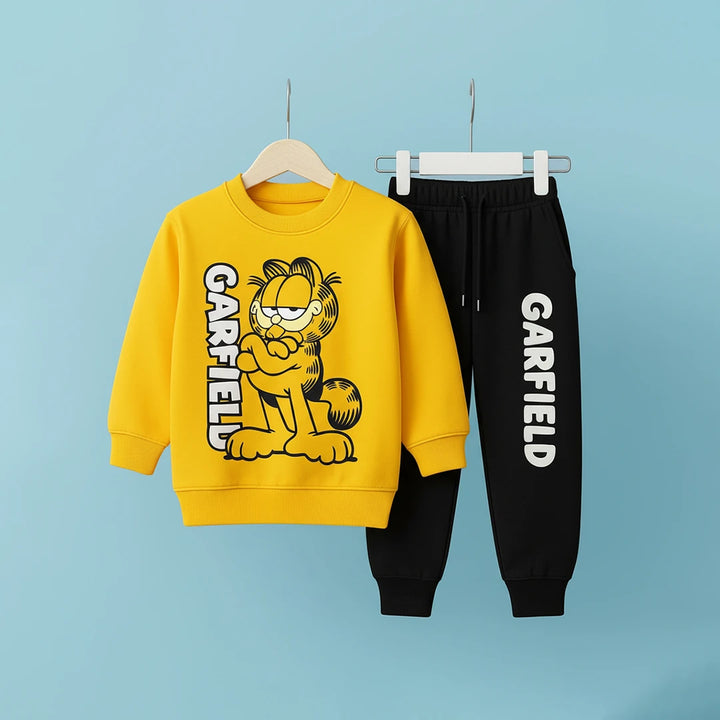 Adorable Garfield sweatshirt and jogger pants, made from high-quality fleece for warmth and comfort.